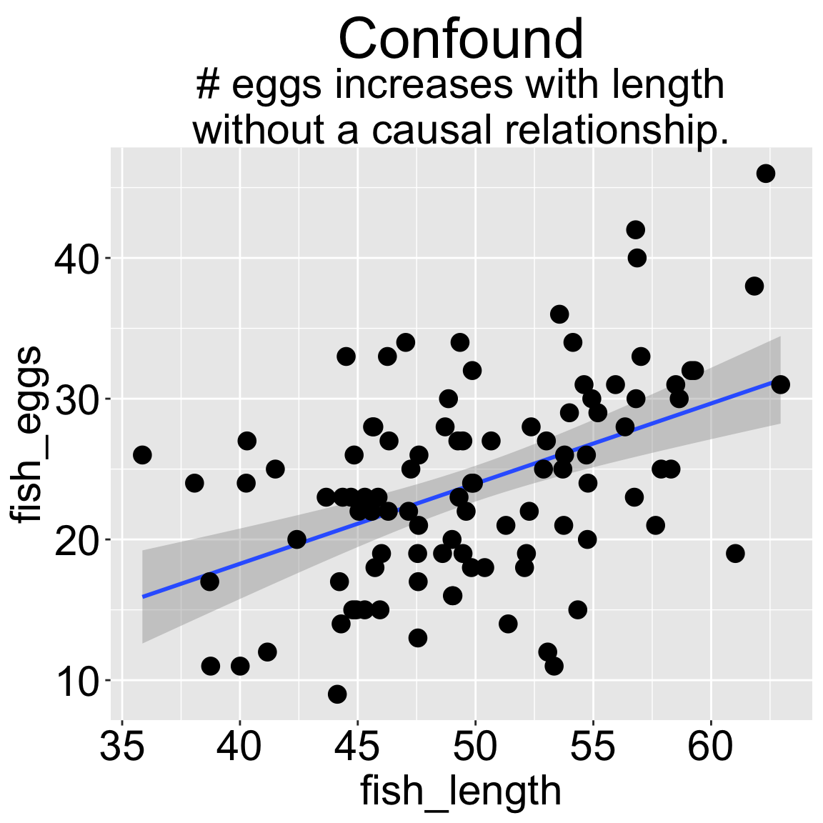 | lm(fish_eggs~ fish_length, data = confounded_fish) | ||||