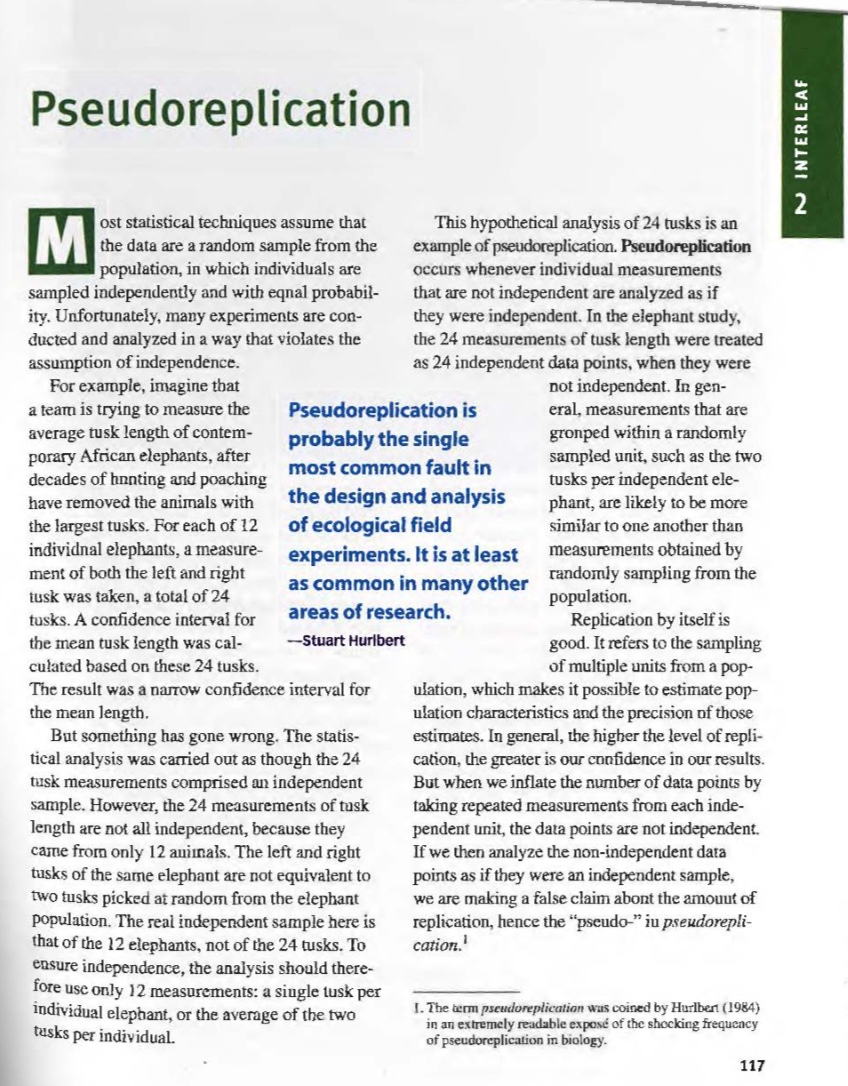 Be sure to read Interleaf 2 on pseudo-replication from Whitlock & Schluter (2020).